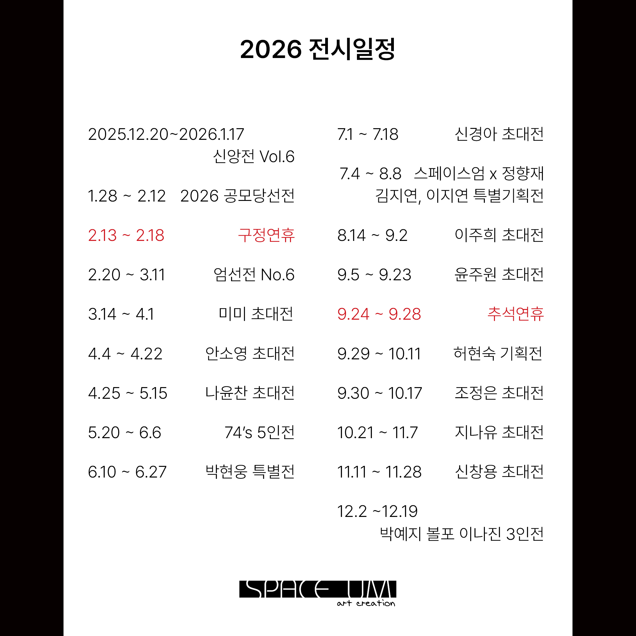 상호: 스페이스 엄 (SPACE UM) | 대표: 엄 윤선 | 개인정보관리책임자: 엄 윤선 | 전화: 02-540-1212 | 이메일: spaceum.artcreation@gmail.com