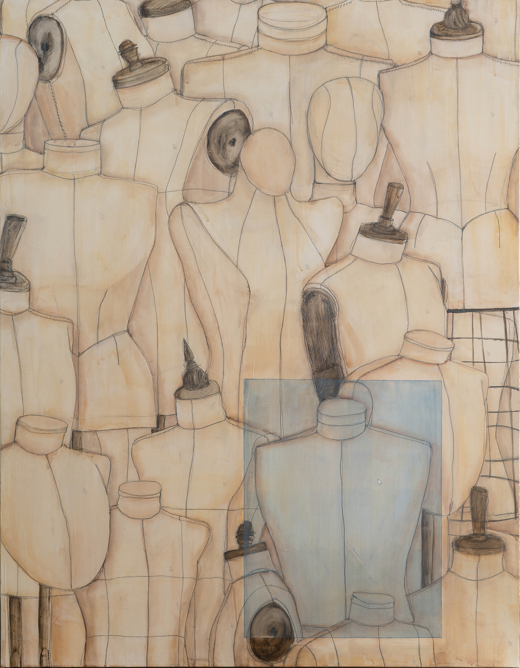 토르소 마네킹과 그 위에 떠 있는 마우스 커서를 통해 초월적인 존재가 우리를 바라보고, 선택하고, 기다리는 장면을 상징적으로 표현했다. 모든 마네킹 위에 커서가 머물러 있지만, 어떤 대상은 클릭에 반응해 파란 드래그 효과가 생기고, 다른 대상은 흐릿한 커서만 남거나, 로딩 중인 상태로 표현했다.