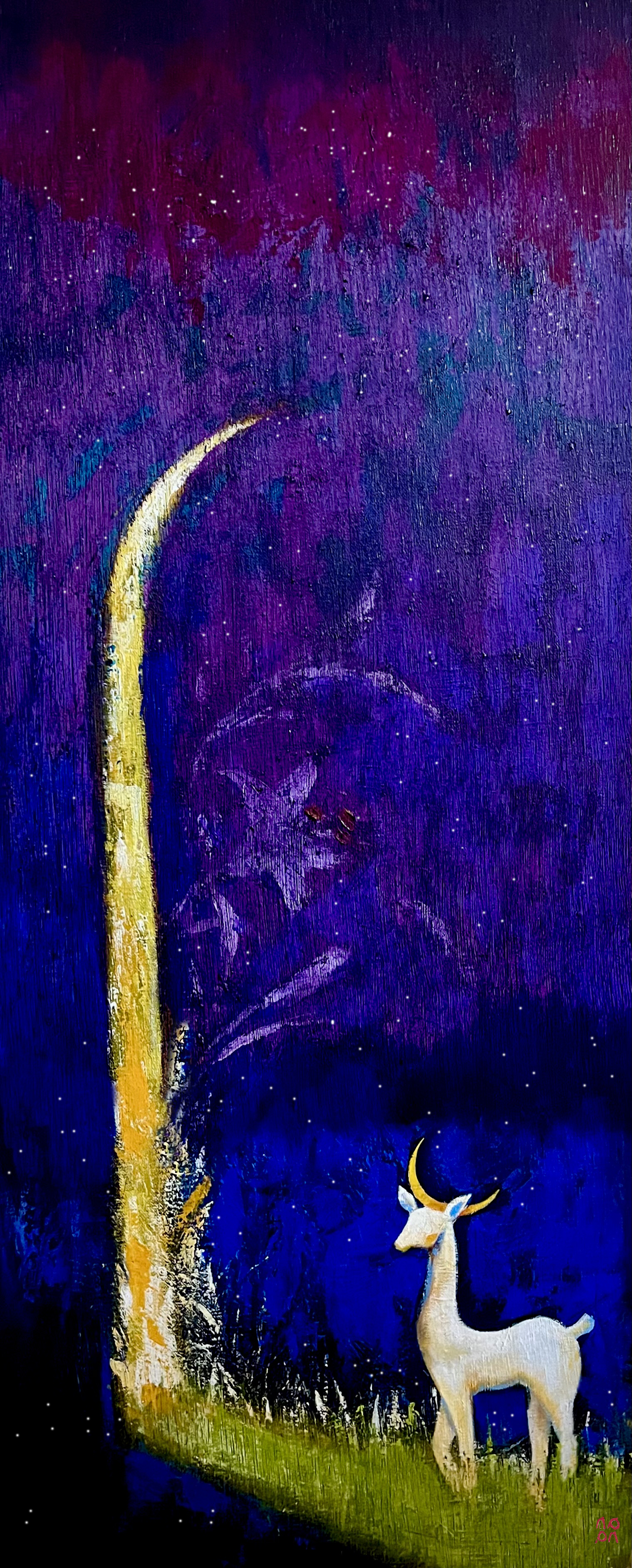 하나님을 향한 갈망을 상징하는 초승달 뿔을 지닌 신부(성도 혹은 작가)와