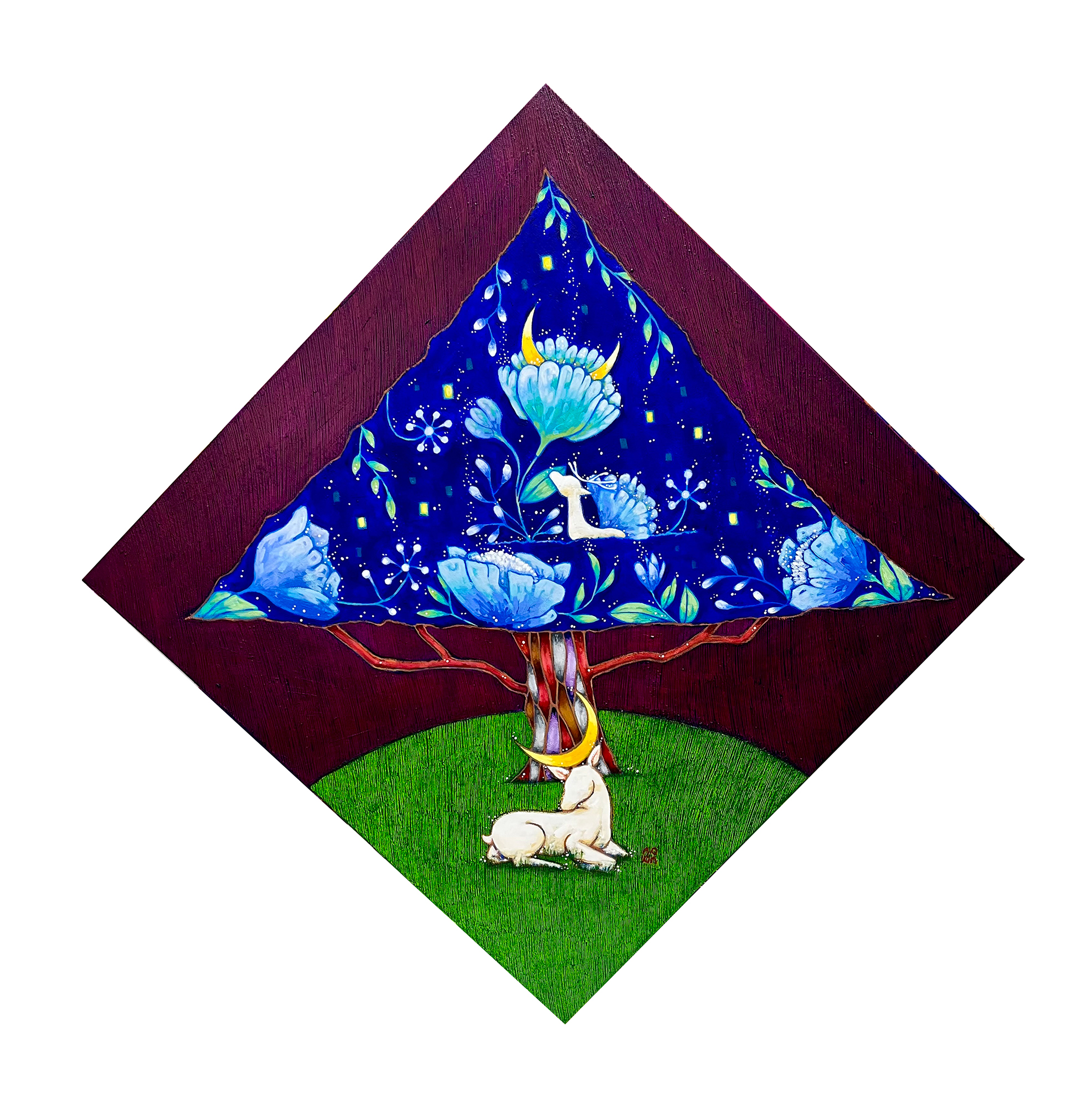 작품 중앙의 두 마리 흰 사슴은 아가서 2장 9절에 등장하는 노루와 어린 사슴을 떠올리게 하며, 순결함과 고결함을 지닌 존재로 각각 신랑과 신부를 상징합니다.