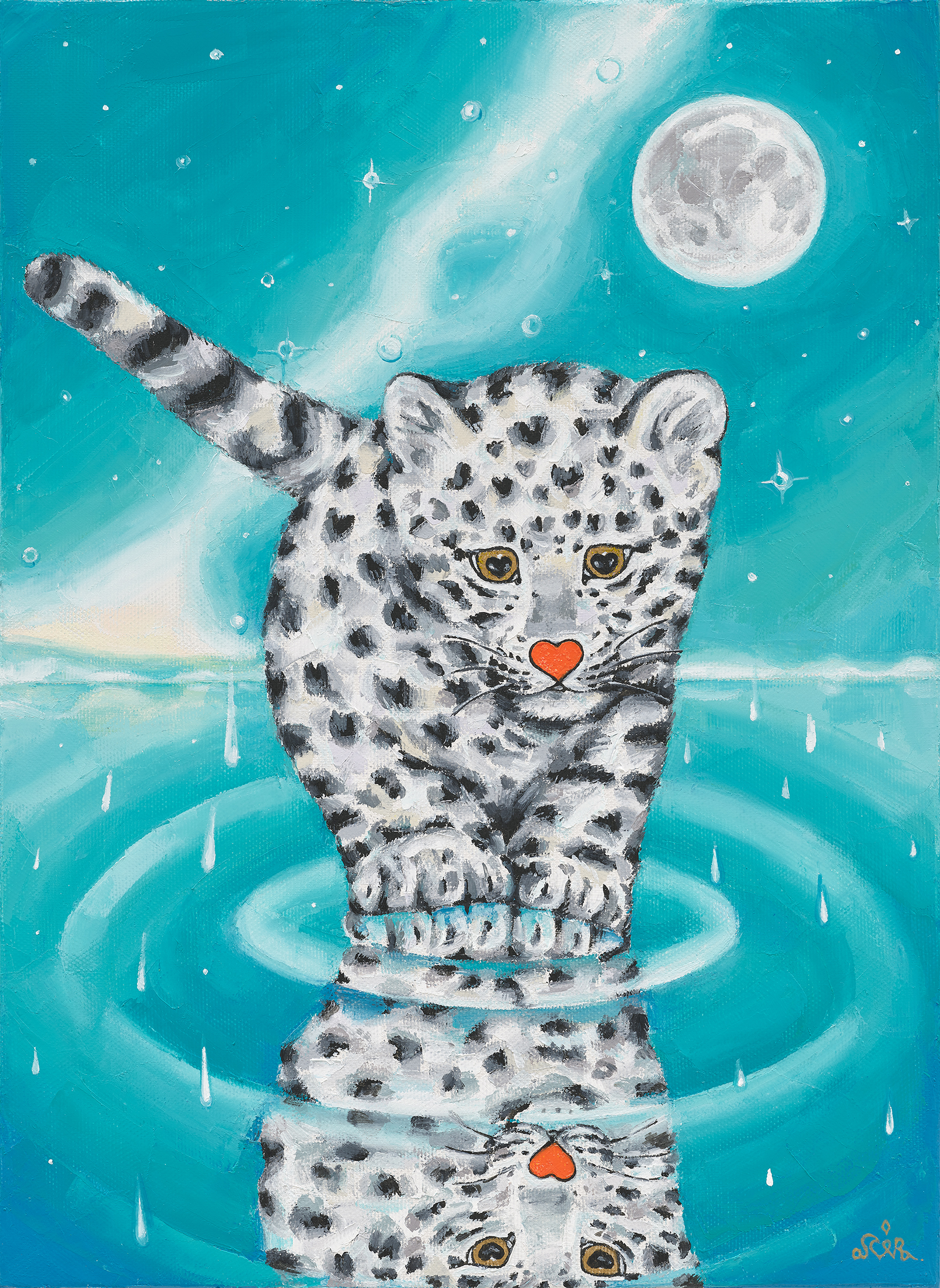 누구에게나 가슴 속에 자신만의 파라다이스가 있다. 나의 낙원에는 달빛 아래 사랑스러운 흰 표범들이 신비로운 동식물과 어울려 노닐고 있다. 당신은 어떠한가? 그림 속 오아시스에 비친 당신을 마주하고, 묻어두었던 비밀의 파라다이스에 작은 파동이 일었으면 좋겠다. 흔들리는 삶의 여정에 우연히 발견한 보물 지도를 만난 것처럼 말이다.