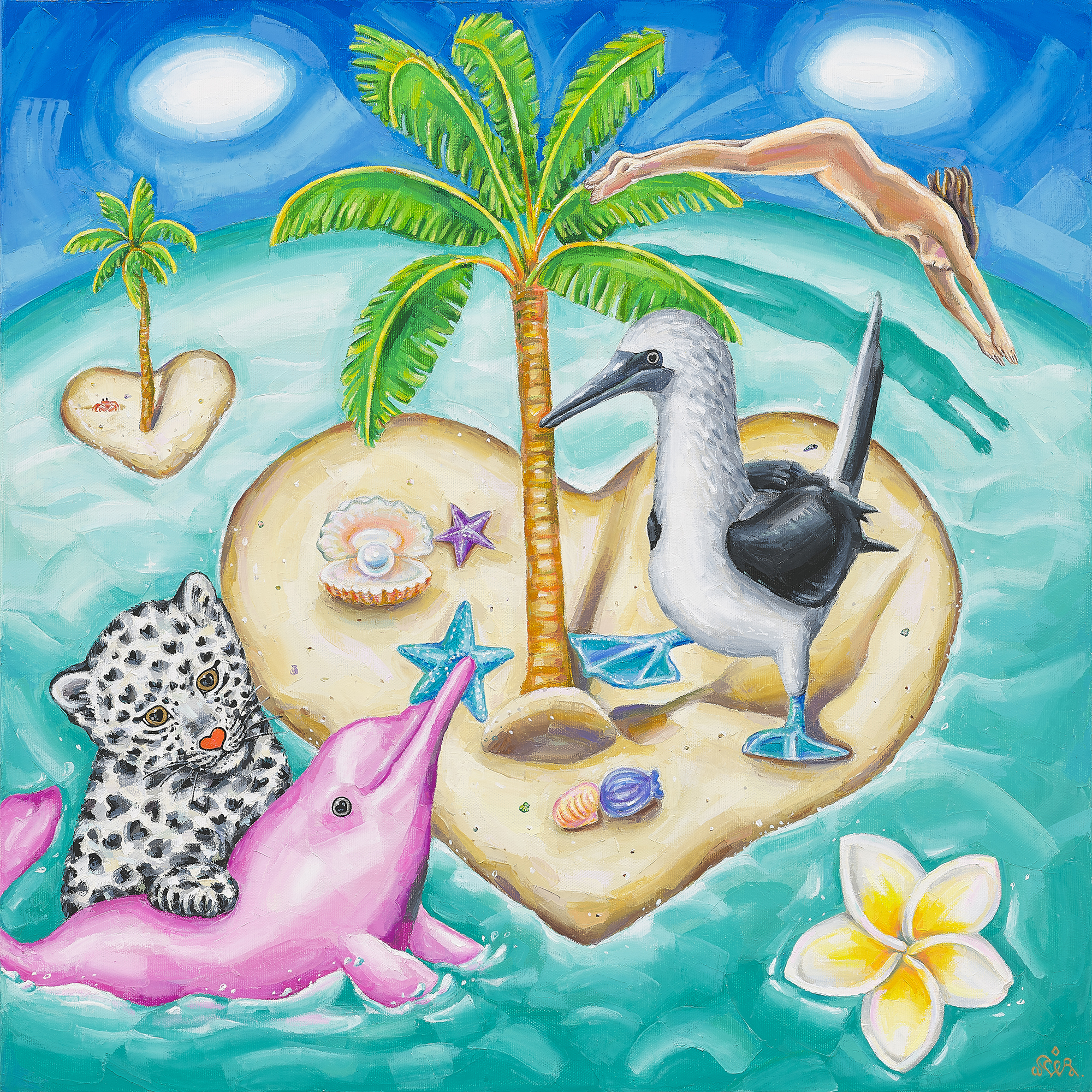 누구에게나 가슴 속에 자신만의 파라다이스가 있다. 나의 낙원에는 달빛 아래 사랑스러운 흰 표범들이 신비로운 동식물과 어울려 노닐고 있다. 당신은 어떠한가? 그림 속 오아시스에 비친 당신을 마주하고, 묻어두었던 비밀의 파라다이스에 작은 파동이 일었으면 좋겠다. 흔들리는 삶의 여정에 우연히 발견한 보물 지도를 만난 것처럼 말이다.