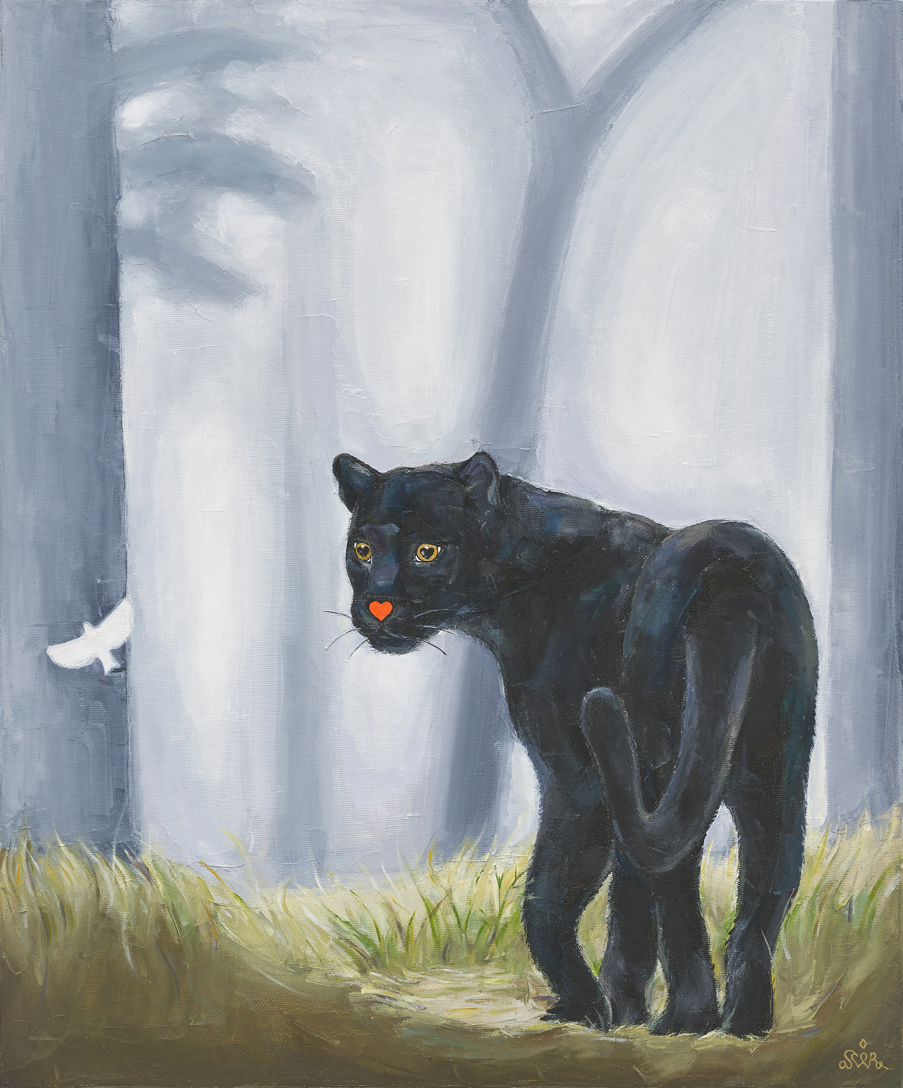 그가 도달한 궁극의 도착지는 드넓은 고원 사이로 만개한 꽃과 적도의 식물이 길게 뻗은 ‘오아시스’이다. 그곳에는 신성한 동물들이 노니는데, 주인공인 흰 표범들이 금빛 눈에 하트 모양 붉은 코를 하고 여행자를 마중한다. 아기 표범들은 오아시스에서 수영을 배우고 나무를 타며 오후를 보낸다. 검은 표범은 흰 표범의 연인이자 친구로 등장한다. 그들은 낙원을 지키는 유일한 맹수이자 사랑스러운 수호자이다. 표범의 코가 하트 모양으로 변한 것은 싸울 일이 없어 사랑스러워진 모습을 표현한 것으로, 영원한 행복과 사랑이 존재하는 유토피아적 세계관을 나타낸다.