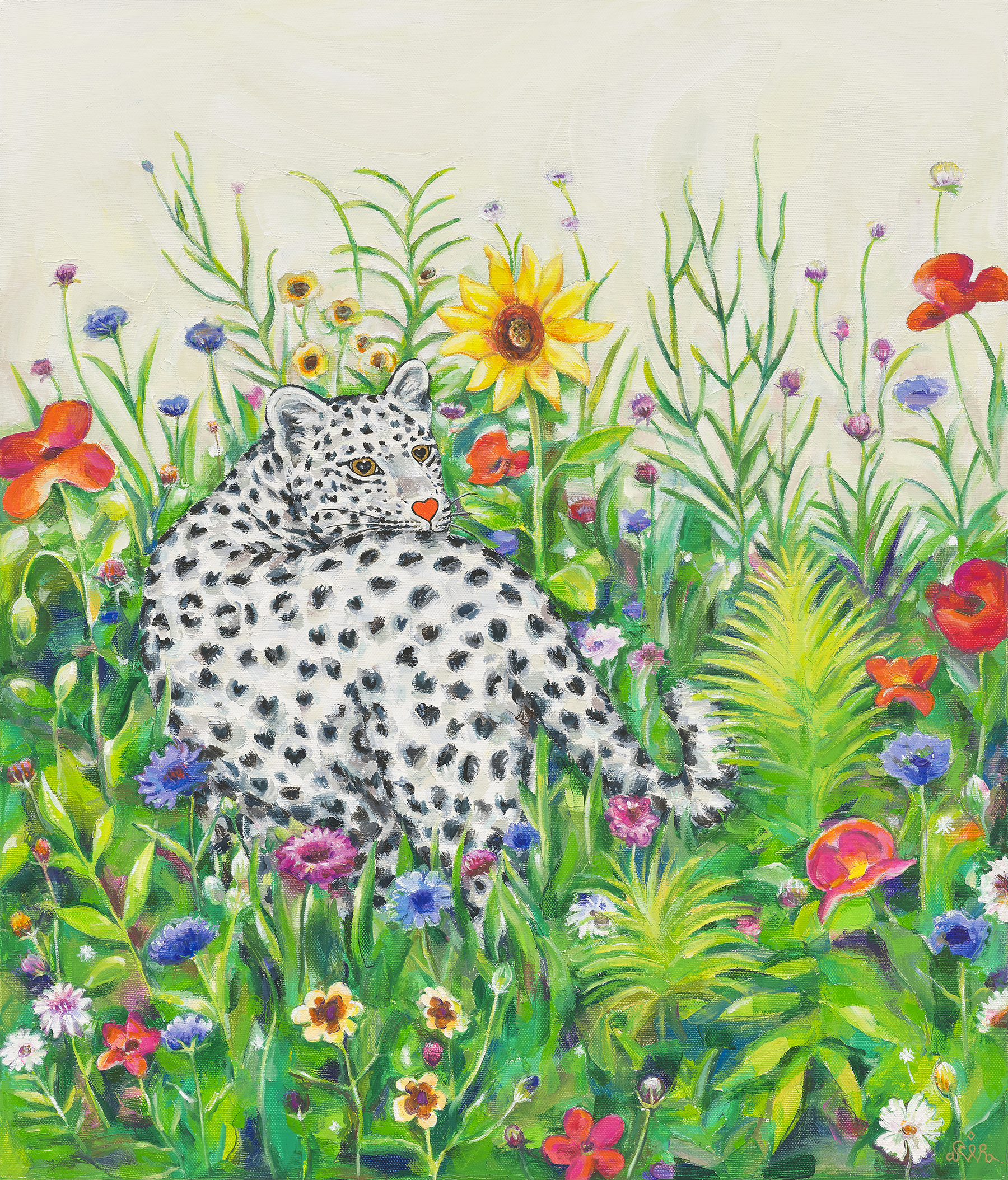 흰 표범과 춤추는 야생화들(White Leopard and Dancing Wildflowers)- 아이라 최